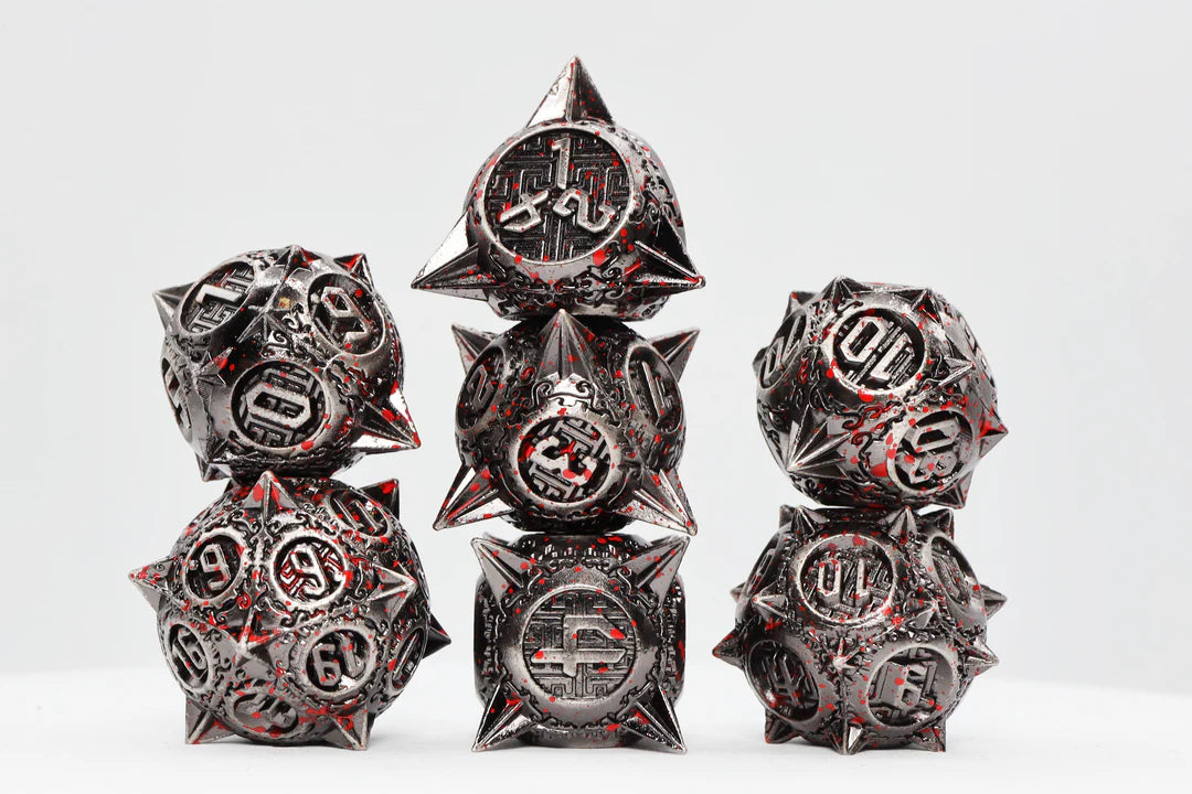 These beautiful dice are slightly larger and slightly heavier than typical metal dice making them the most satisfying dice you'll ever roll.