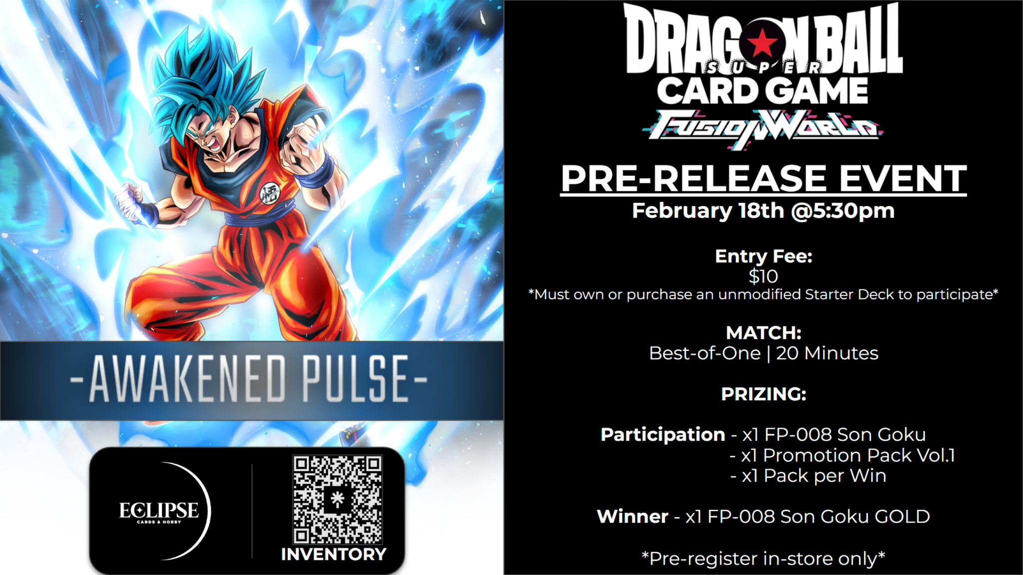 Hurry! Only0units left in stock!Release & Pre-Release events for Dragon Ball Super Fusion World!